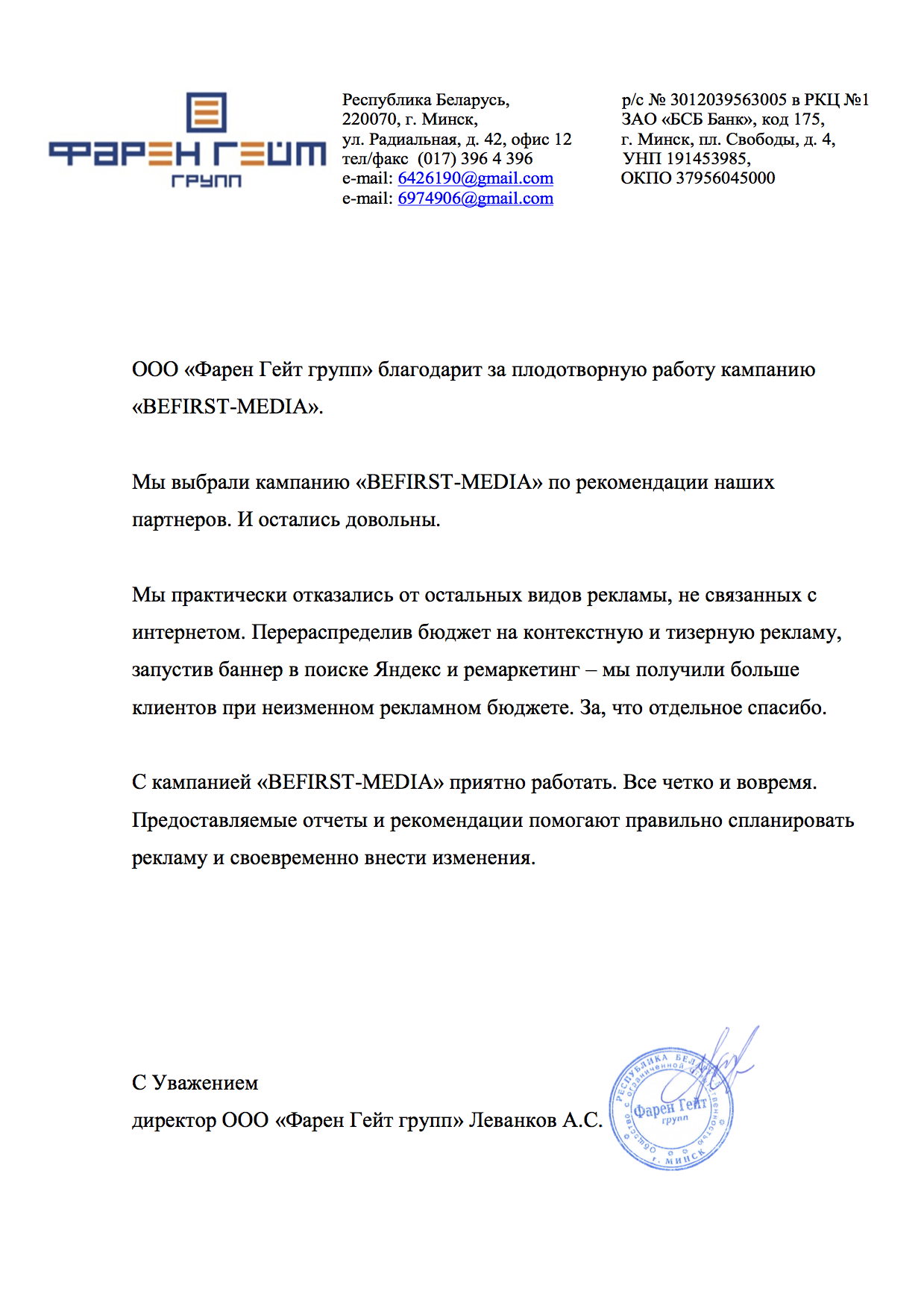 | Сопровождение РК | от 100 BYN | от 100 BYN |