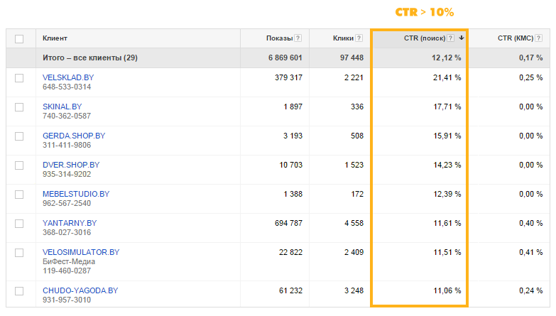 в рекламу средств (Яндекс Директ и Google Adwords считаются раздельно).